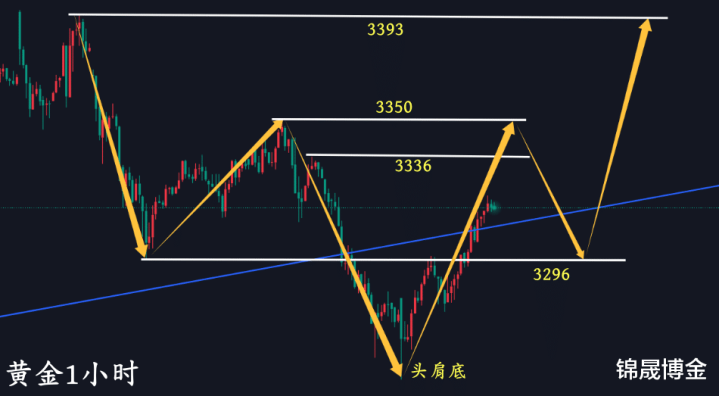 从技术面来看,当前整个结构有形成头肩底形态的趋势,所以今天黄金从两方面来看: